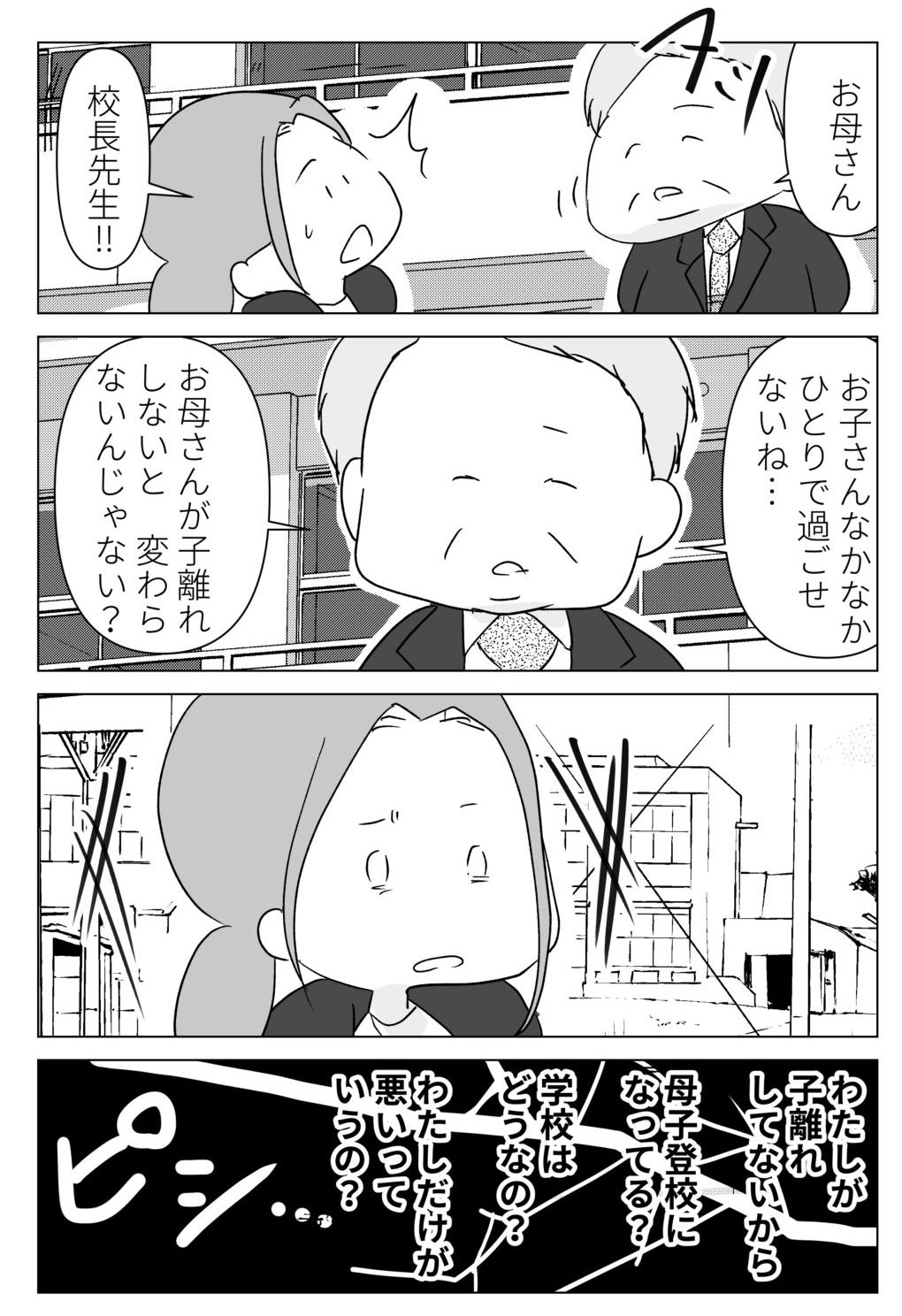 ・長期間、学校で付き添うことで、子どもたちは付き添いをする自分(母親)を「補助の先生」として求めてきて疲れてしまう