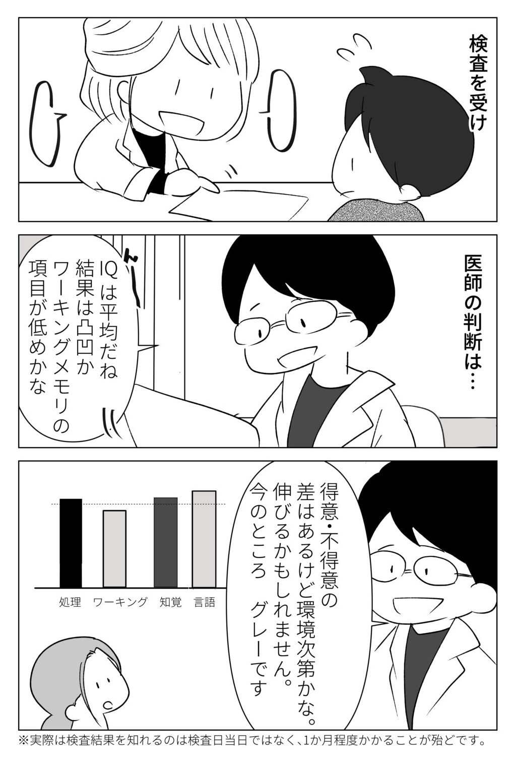 ↓の漫画では医師が登場しますが、検査を受け、2週間~4週間くらい結果が出るのを待ち、親のみで(あるいは本人と一緒に)検査結果の説明を受け、それを学校に提出して支援計画を立てる…というのが一般的かなと思います。